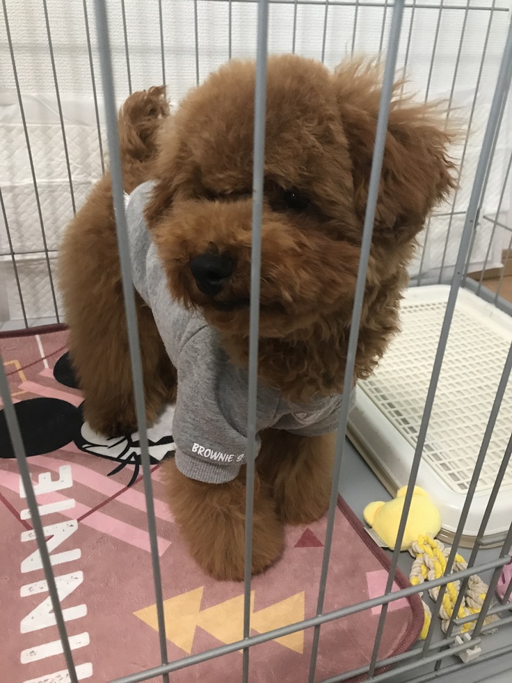 Toffeeと出会ったのは2021年4月、実家の柴犬の散歩でたまたま通りがかったペットショップでした。生後2か月くらいの赤ちゃんたちに混じって一匹だけすごく大きな子がいました。すでに6ヶ月弱の男の子。実家のわんことも怖気付かず活発に遊べる子でした。最初は家族に猛反対を受けましたが、一人暮らしを始めることをきっかけに迎え入れることとなりました。まるでお菓子のToffeeのような色なので、そのままToffeeと名付けました。