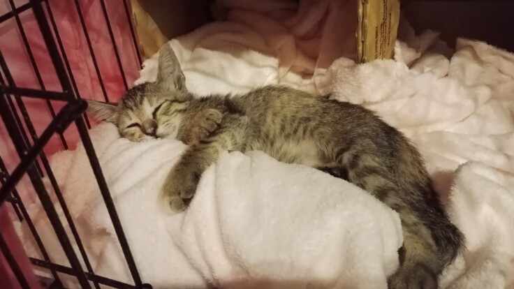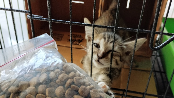 市場からレスキューをし、保護当初から酷い下痢が続いていましたが、投薬治療と保護施設のご厚意でいただいたロイヤルカナンのフードのお陰でようやく下痢も治まってくれました。