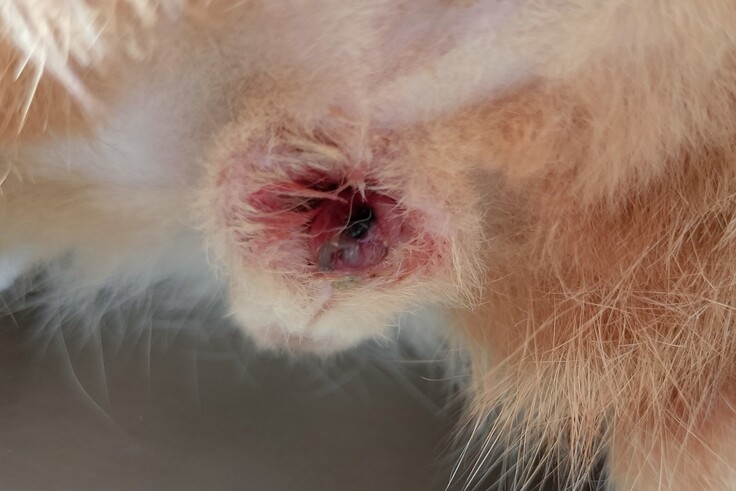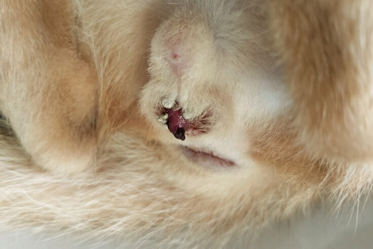 先週の火曜日去勢手術をしたトトくんの患部が開いてしまいました。