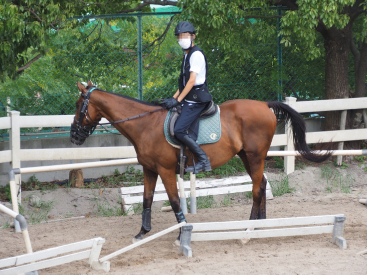 T君は、アウトリーチによる支援をするが、中々コミュニケーションが成立せず、関係が作れませんでした。長距離走が得意ということもあって、長居公園で運動しようと誘ったことがきっかけとなって、送迎の車中で話ができるようになりました。私立中学在学で内部進学できたのですが、通信制高校への進学を選択した頃からは、私たちとの相互理解と信頼関係ができたと思います。そして、元々馬が好きだったT君は、2022年の5月に乗馬クラブクレインで体験をし、クラブに入会してからはどっぷり乗馬にはまり込みました。今やインストラクタークラスで練習をしています。また、当初の不満もあったが高校も、テストも終えて単位取得ができました。