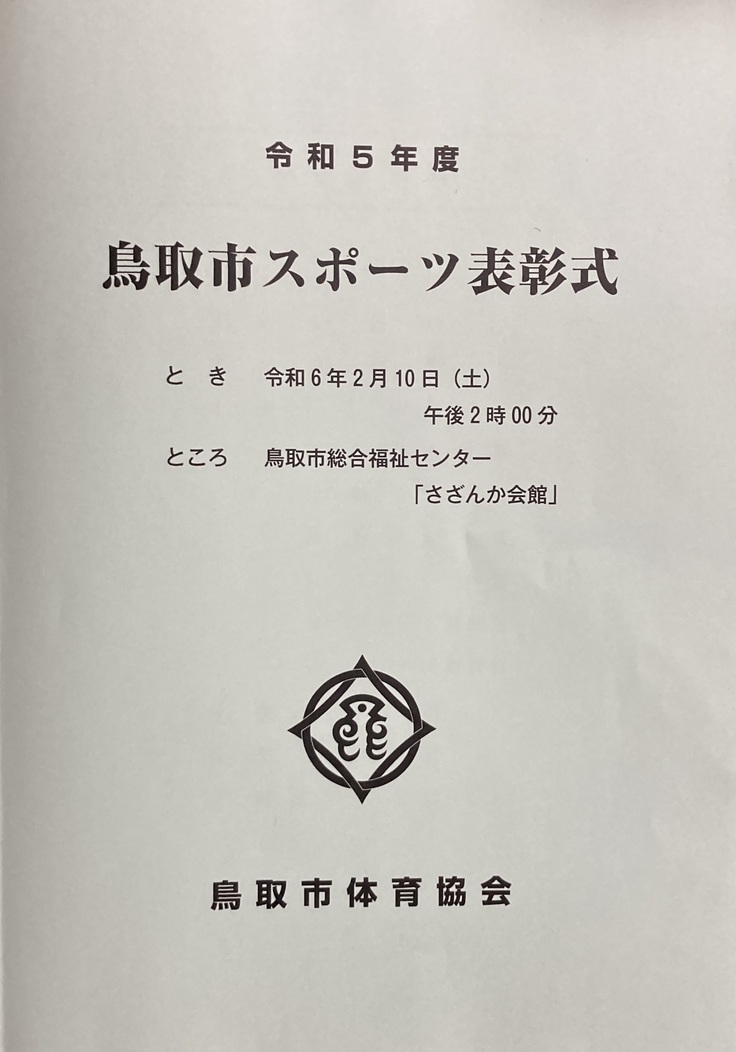 鳥取市体育協会さまよりスポーツ表彰を受賞させていただきました