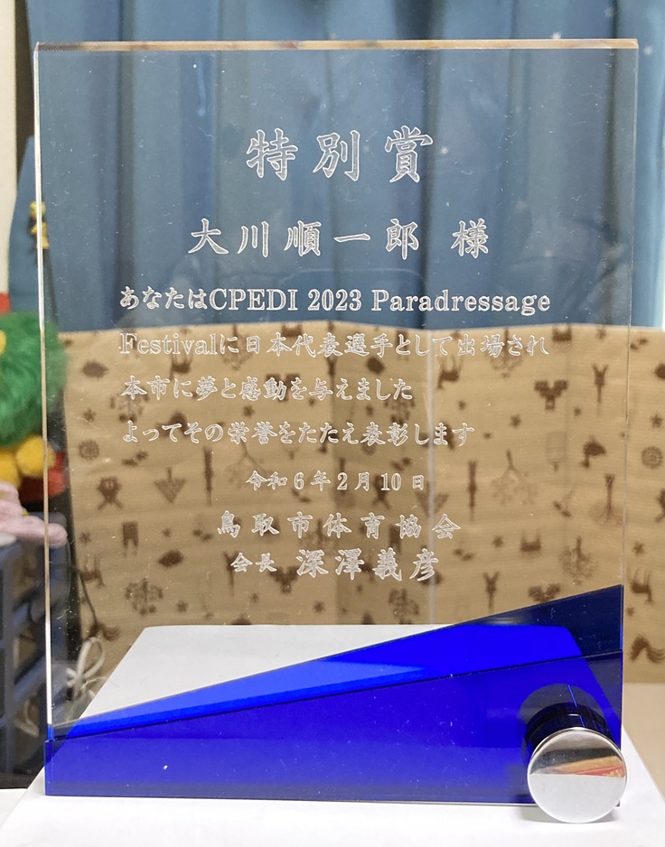 このたび、鳥取県障がい者スポーツ協会さまの推薦により、鳥取市体育協会さまよりスポーツ表彰で特別賞を受賞させていただきました。