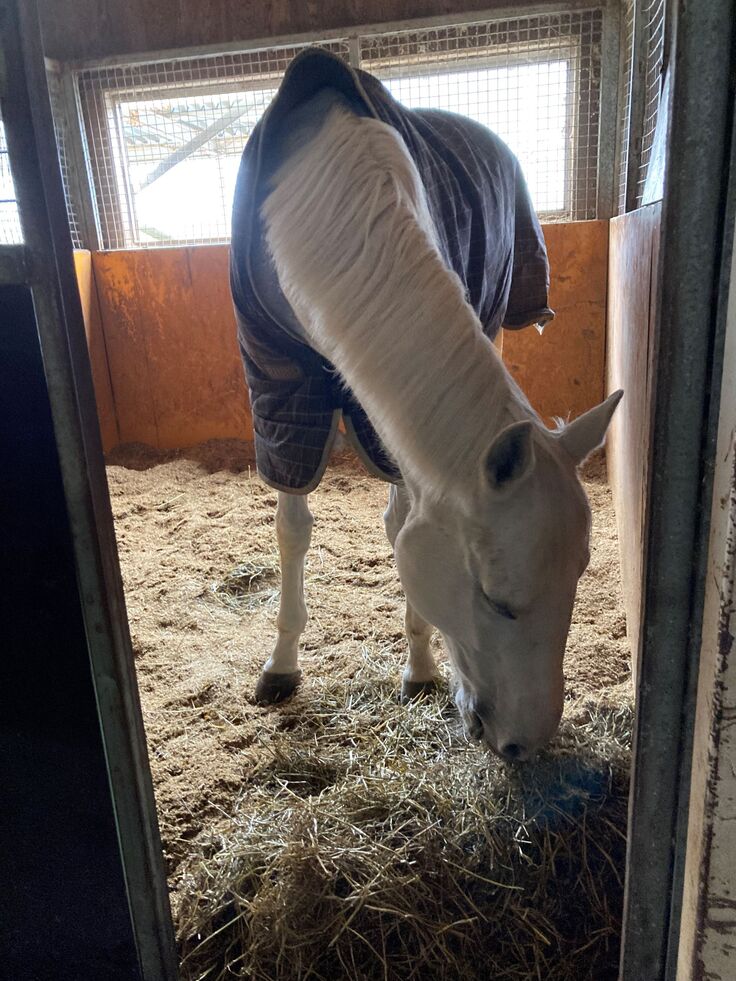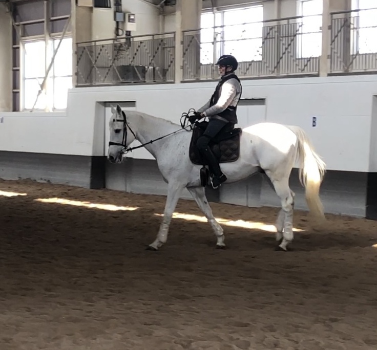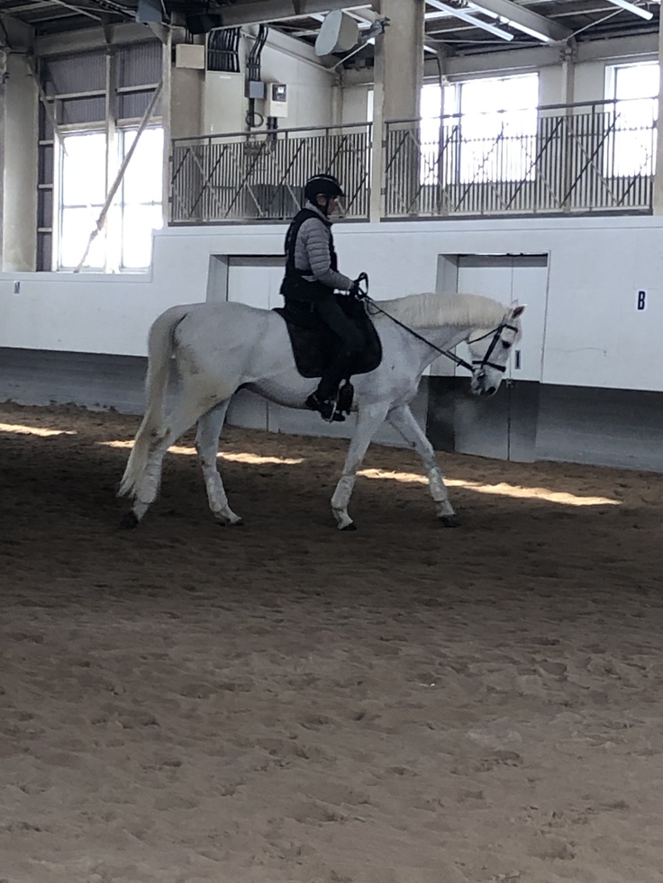 本日は、外の馬場にはまだ雪が残っていましたが、室内馬場で童夢とコンビネーションを確かめながら気持ちよくトレーニングをすることができました。