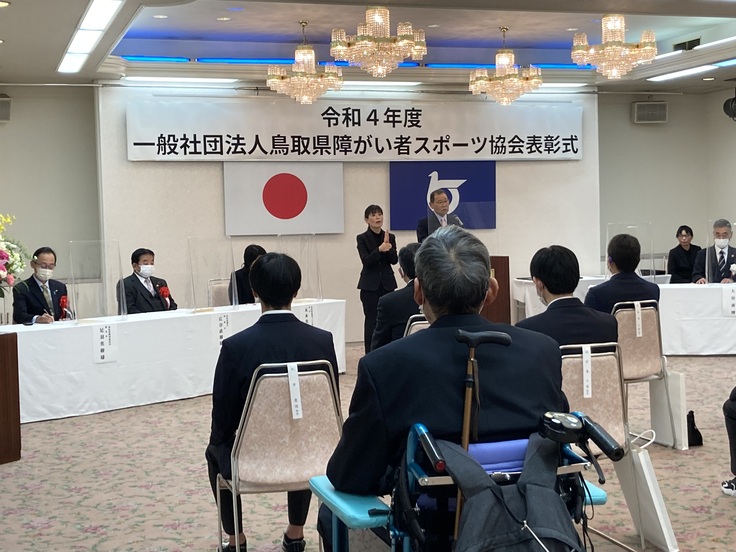 次の写真は、昨年の鳥取県障がい者スポーツ協会の表彰式の様子です。