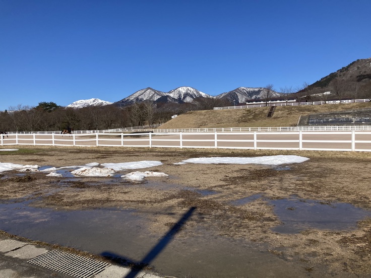 朝はとても冷え込みましたが、春の訪れを感じるようになりました。馬場の雪も解け、久しぶりに馬場が顔を出しました。