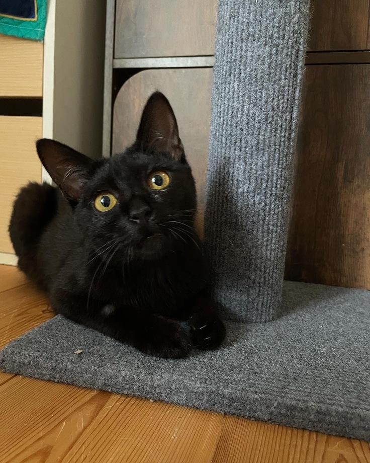 その日の帰り現場近くで見たことのない小さな黒猫が現れました。