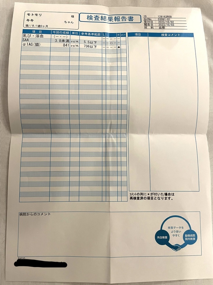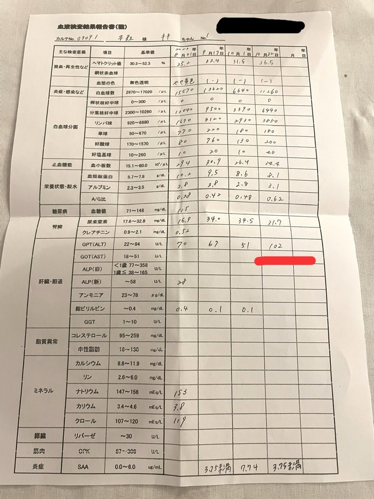 SAAの数値も前回は一度下がったのが、上がってきたので心配しましたが、また下がっていました。肝機能の数値が上がっていますが、様子見で大丈夫とのことでした。