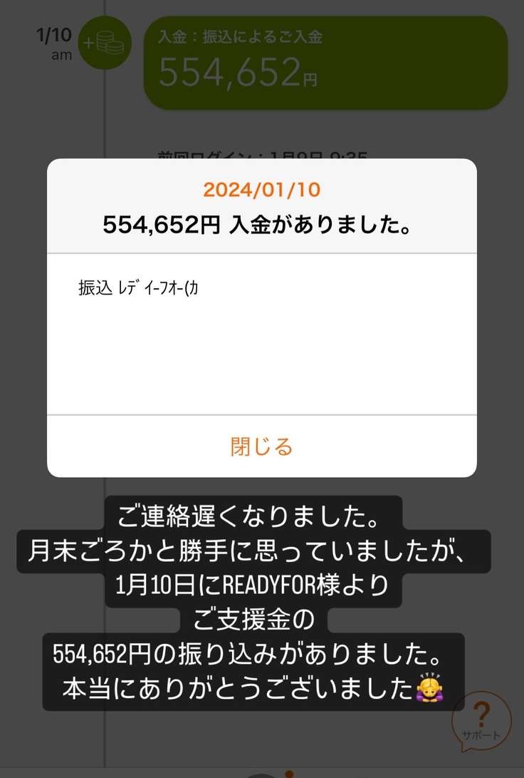 先日入金確認しました。インスタのハイライトにも掲載しています。