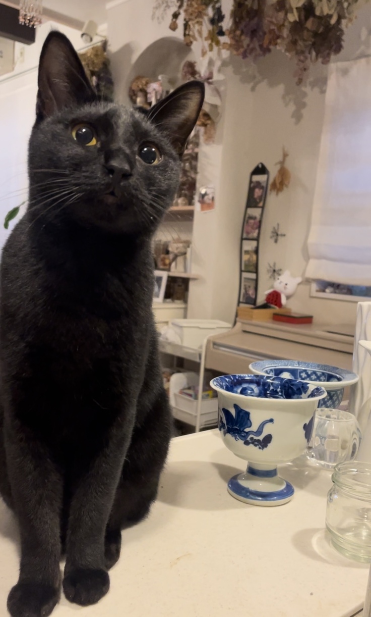 キッチンにご飯をおねだりにくるキーちゃん🥹