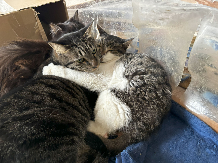 令和5年11月30日(木曜日)チビとアトムがくっついて寝てました。