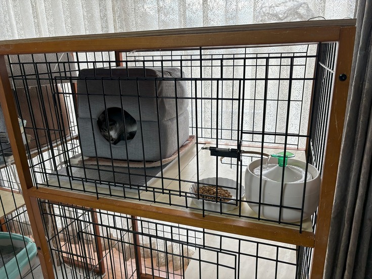 チビには、今日からしばらくの間ケージの中で生活してもいます。