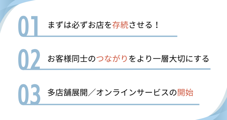 この期間にさらにお店を発展・成長させ、今後継続していくための基盤をつくります。