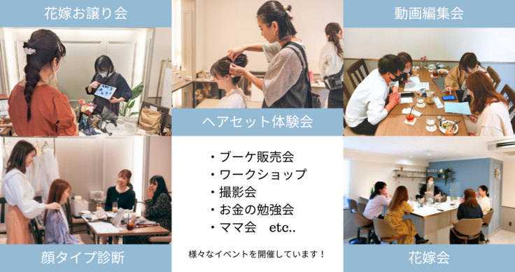また最近では「卒花会」「お金の勉強会」「ママ会・プレママ会」など結婚式が終わってからも楽しんでいただけたりお役に立てるようなイベントも開催しています!