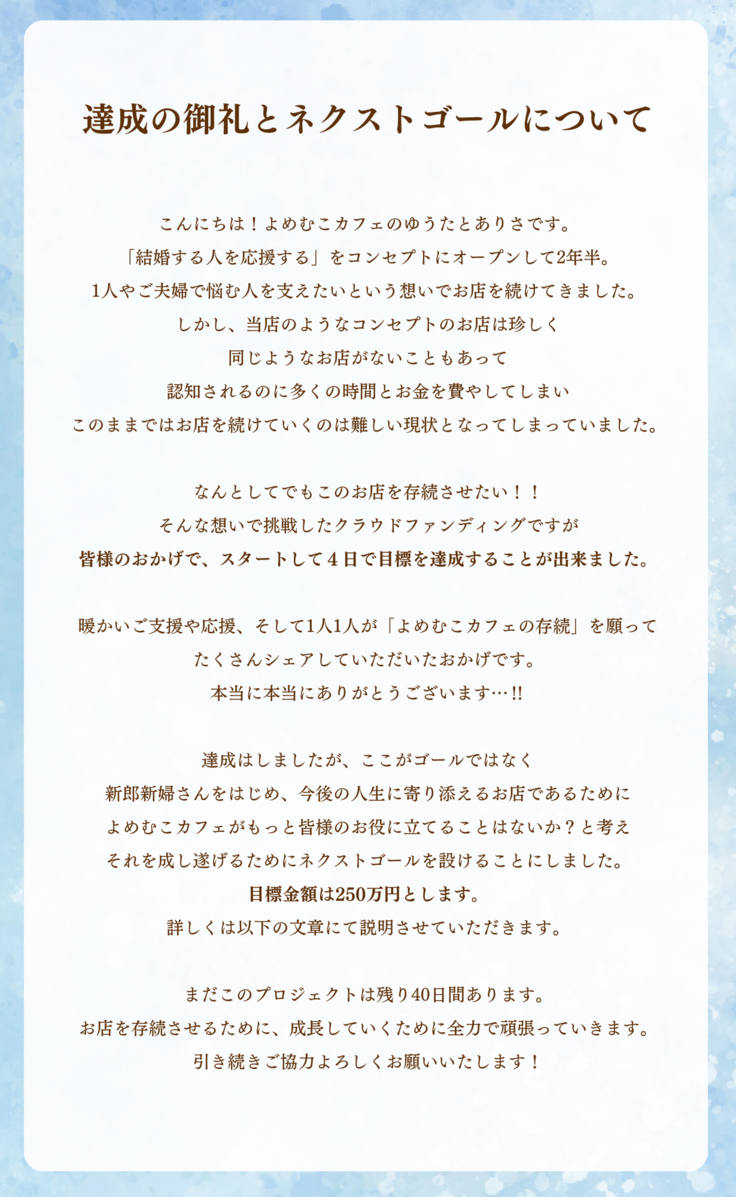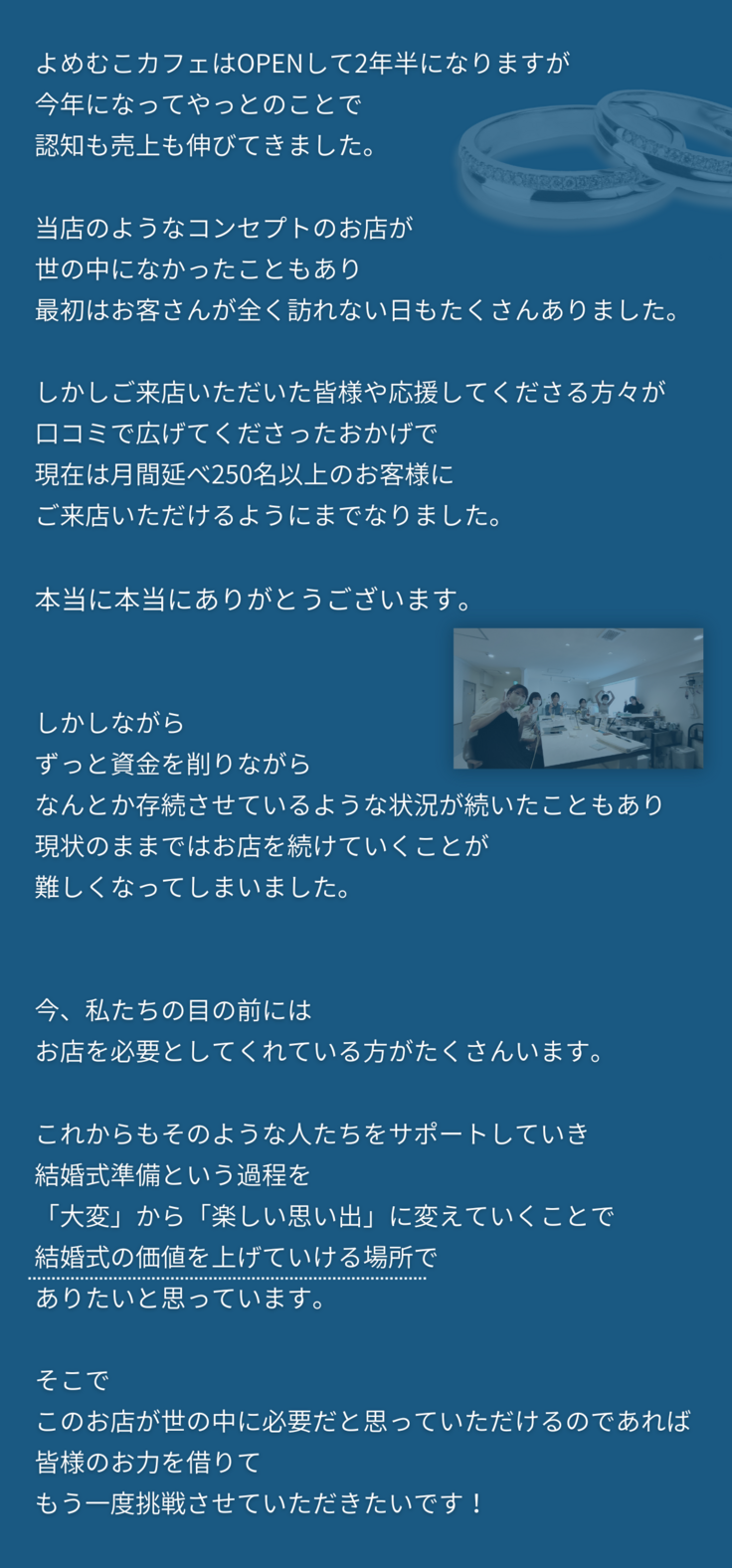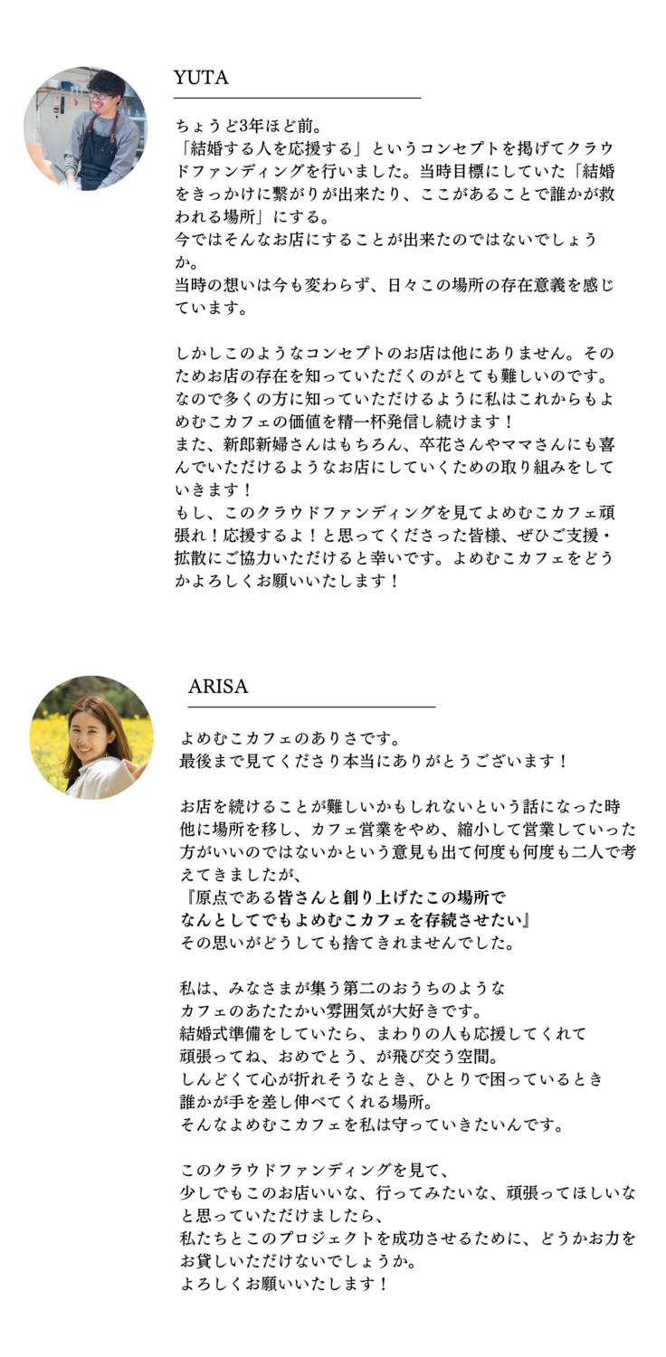 どうかよめむこカフェ存続にご協力いただけないでしょうか。