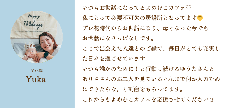 よめむこカフェのような場所が他にもあることで救われる人がいると思ってます。