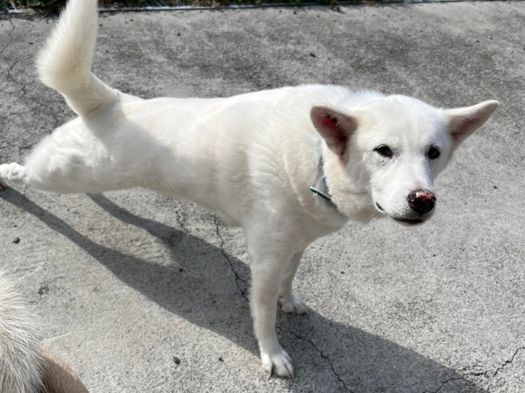 コンクリート張りになったおかげで、被毛に砂や土が絡まることもなく