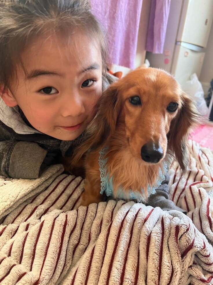 少々ビビリな性格ですが、すぐにずっとの家族だと認識したのか、べったり安心しきった様子♪