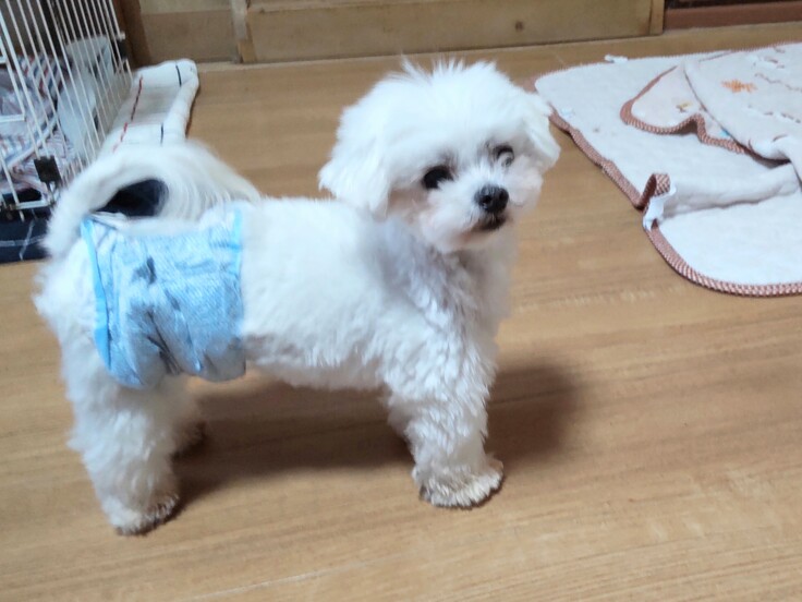 ▼去勢前やマーキングをしてしまう男の子はオムツをしています