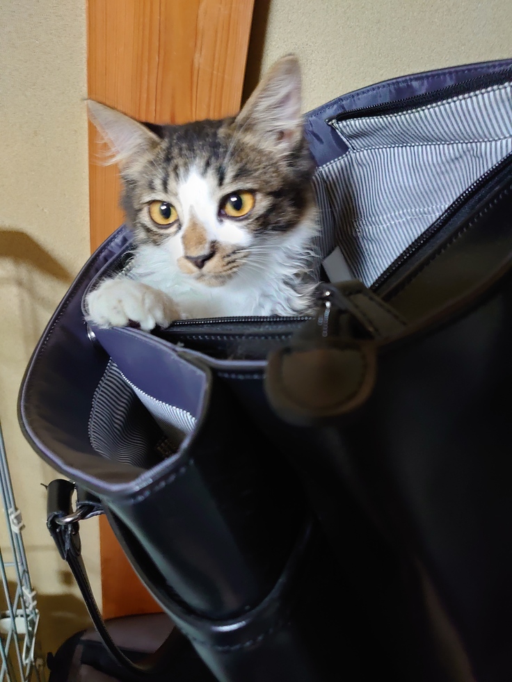 秋ちゃん🐱何故かバックに入って可愛いね💕一緒にお出かけしたいかな?