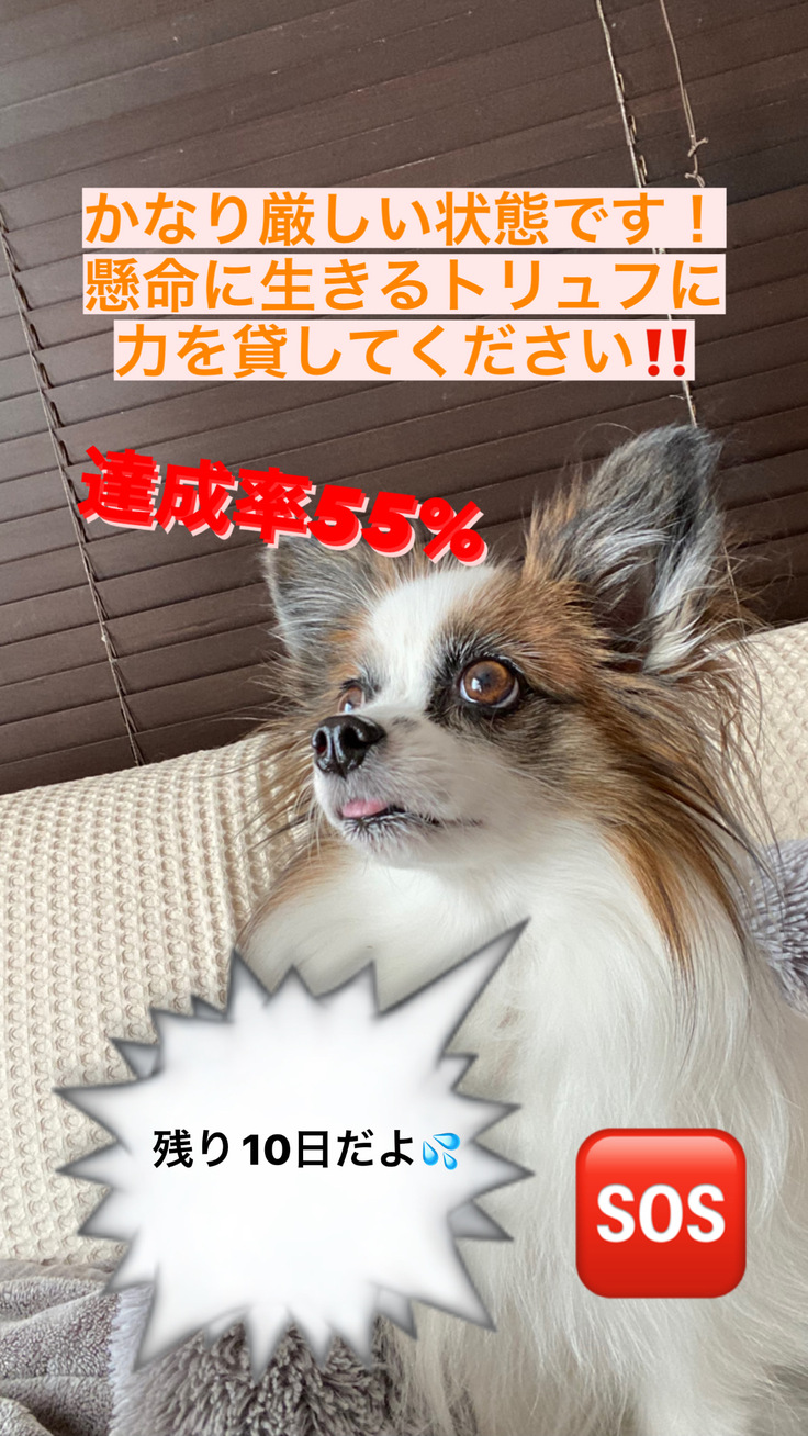 クラウドファンディングも残すところ10日となってしまいました。 達成率がかなり厳しい状態となっています、達成しなければ 1円もいただけせん‼️ どうかトリュフを助けてください🆘
