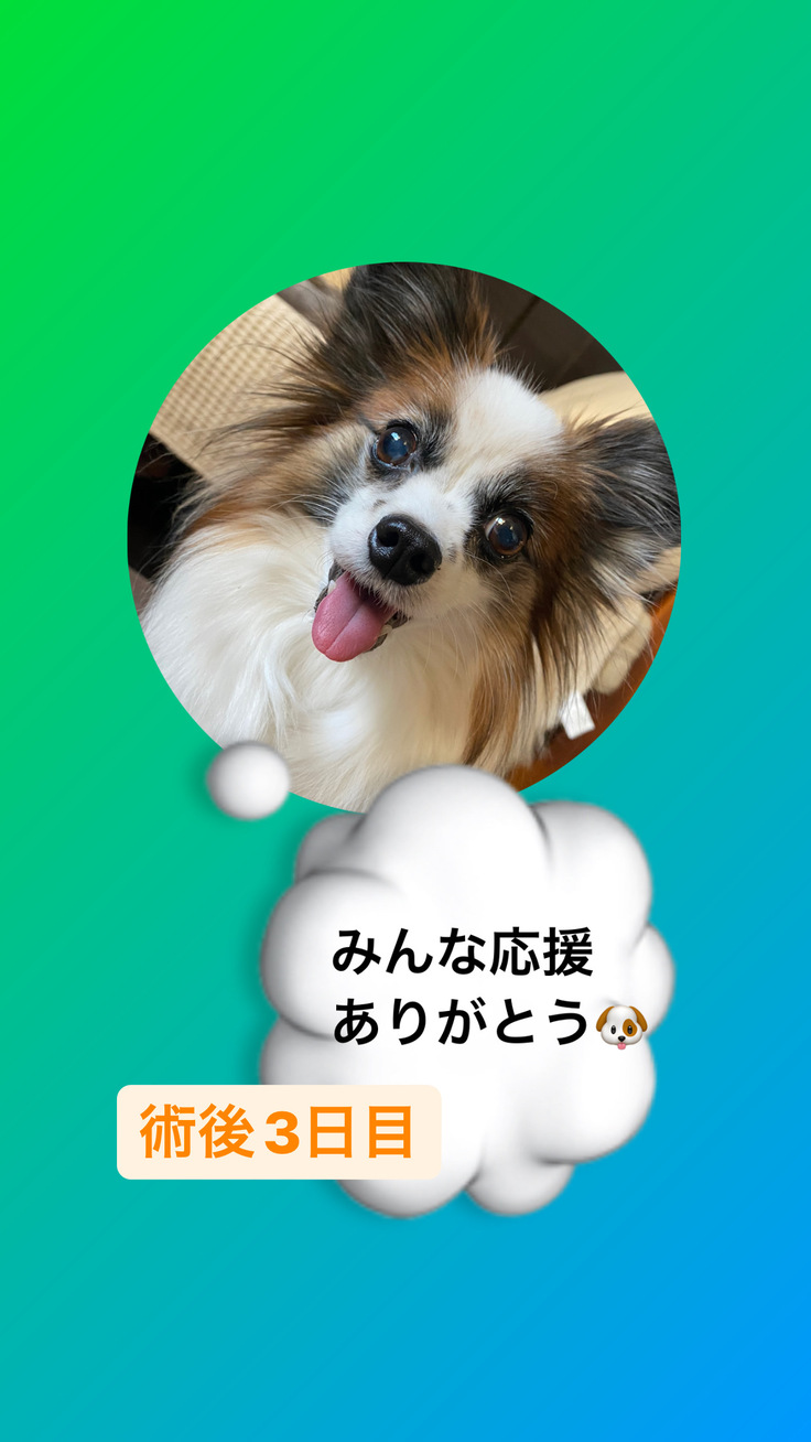 お陰様で 手術も無事成功し 本日4日目になろうとしております。検査の数値の悪い所 不整脈もみうけられまだまだ心配はつきませんが トリュフは本当に頑張ってくれています。