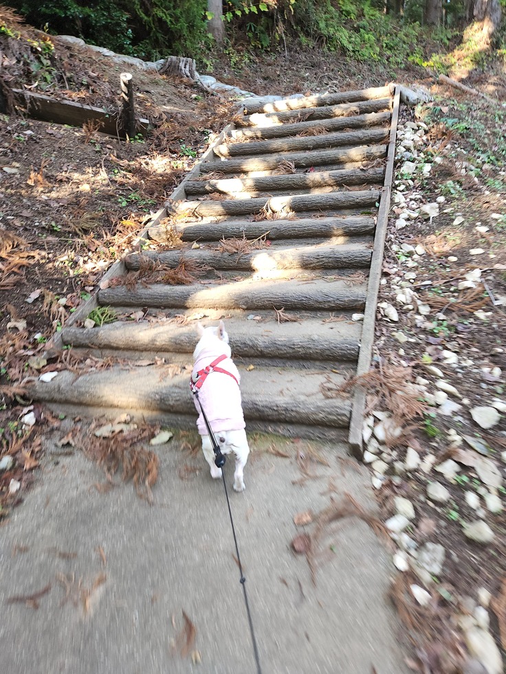 痴呆防止の為に毎日の散歩道を変えてみたり、体力をつけるのに休みながら1時間くらい歩いています。