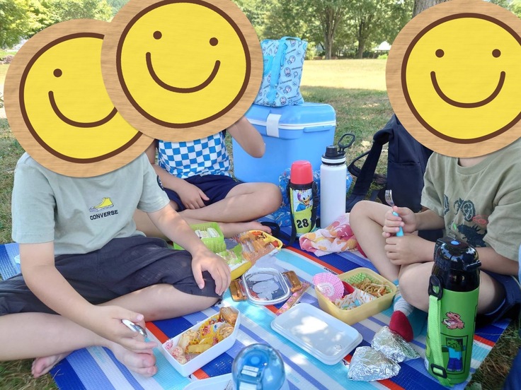 外でみんなと食べたお弁当、みんな嬉しそうでした。