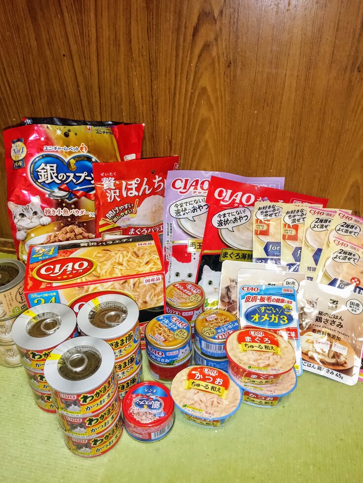 皆様のご支援のお陰様で猫ちゃん達の餌を沢山買うことが出来ました、本当に心から感謝致します🙇