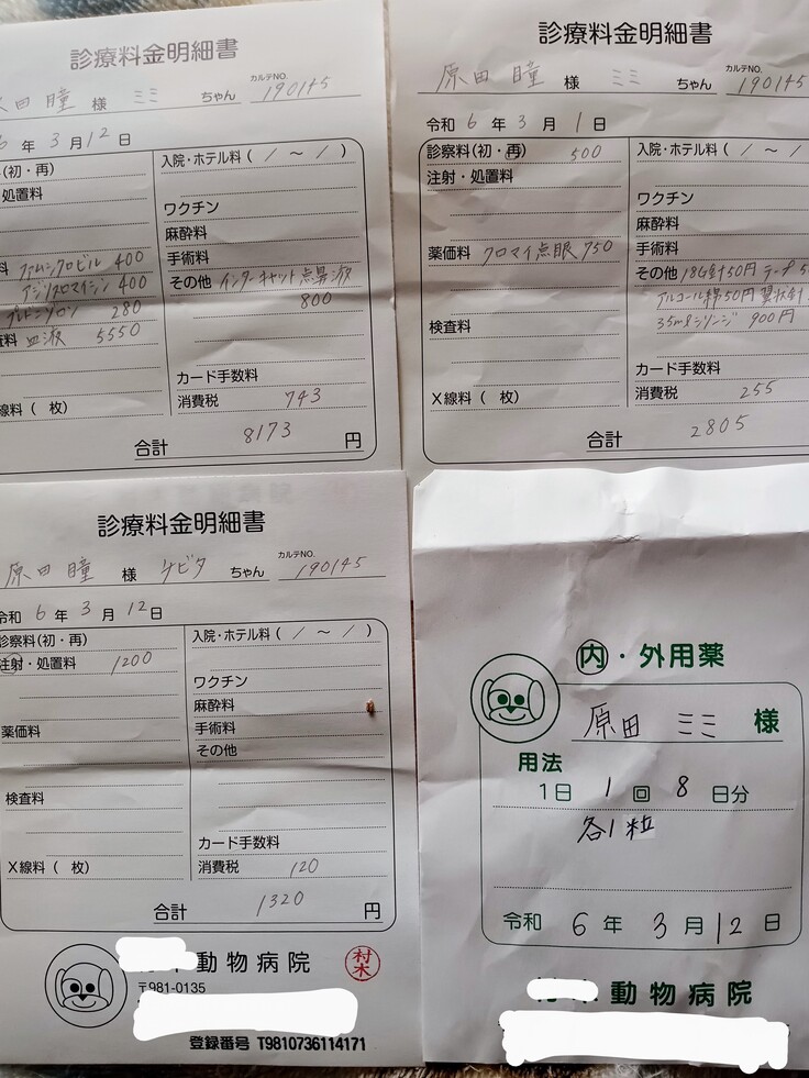 猫も人間も年取ると色んな病気が出てきますね😵 失業している今のうちに両方の病院通いしたいと思います。