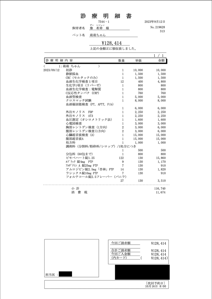4.掲載している資料についてページ上で掲載している診療明細書等の資料は動物病院から掲載の承諾を得ております。