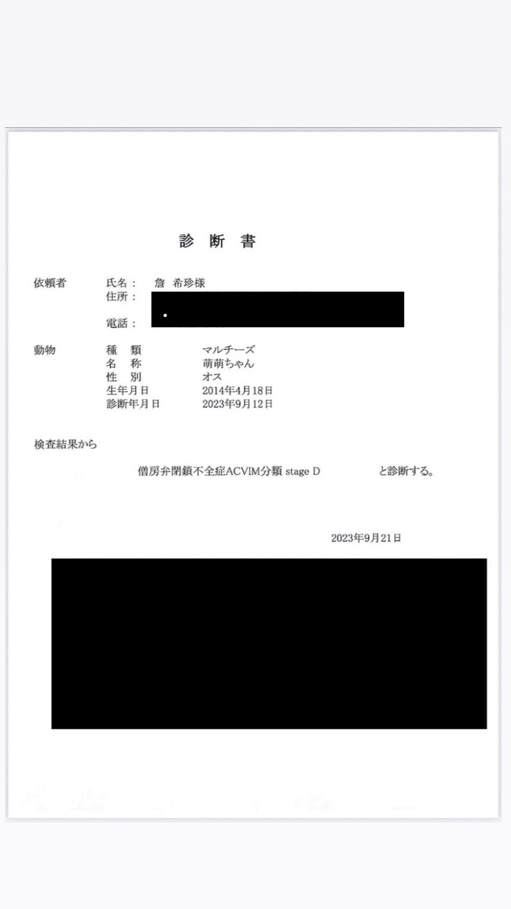 また、担当の獣医には萌萌の生存意欲が非常に強いことを教えてくれました。検査結果を踏まえ、早く心臓手術を受けられれば、成功率は70~90%に達する可能性があると言われました。しかし、手術費用は約209~216万円がかかります。