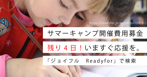 サマーキャンプを続けていくことで、多くの子どもたちに笑顔が浮かびます。その子どもたち、そしてまた来年出会う子どもたちの笑顔のために、私はゴールまで走り切ります。