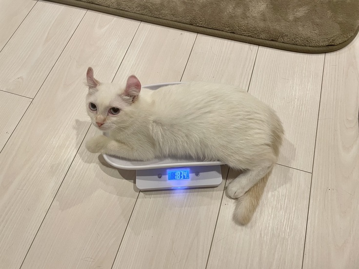 体重が増えるたびに投薬量が増えるのですが、1.9kgになったら400gになります💊今日の体重は1.8kgでした🐈