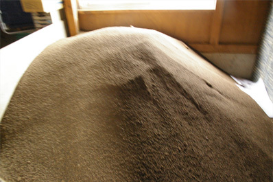 タクミくんの奥に見える土が育苗箱に敷き詰める土。