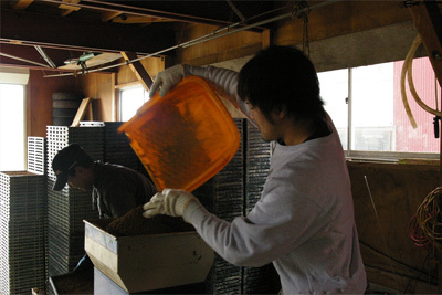 数日かけて1つ1つ丁寧に愛情込めて、育苗箱を作るのです!