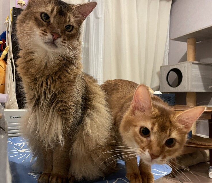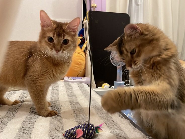 お兄ちゃんを追いかけまわす程元気で行ったり来たりしています🐈🐈!!