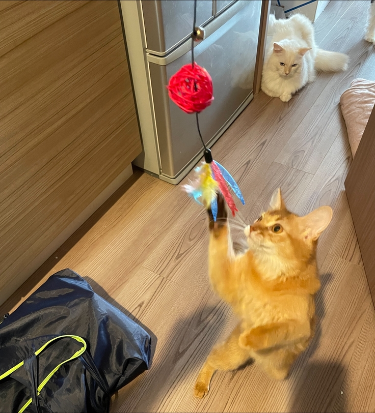 おもちゃのひもが切れてしまって、新しいじゃらしを購入しました^ ^