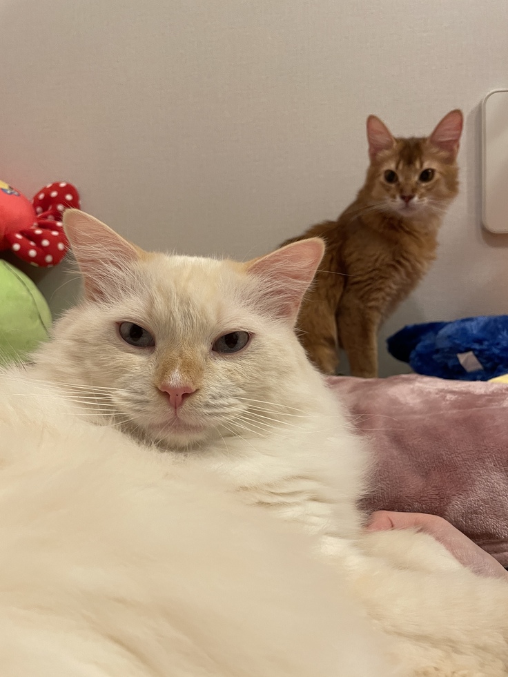 居心地が良かったようでグルグル言ってしばらく寝ていました🤭頭上にはお兄ちゃん猫、脇にはりっちゃんがいて最近目覚めるのがちょっと楽しみです😊