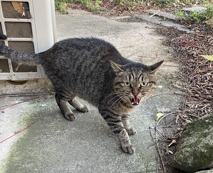 2年ほど前に来てた子ですが、移動して、少し離れたお家で居着き餌を貰っていました。通勤の行き帰り、前を通るのでたまに見かけてました。去勢も済ませてましたので、そちらのお家にお世話お願いします、と声を掛けていました。