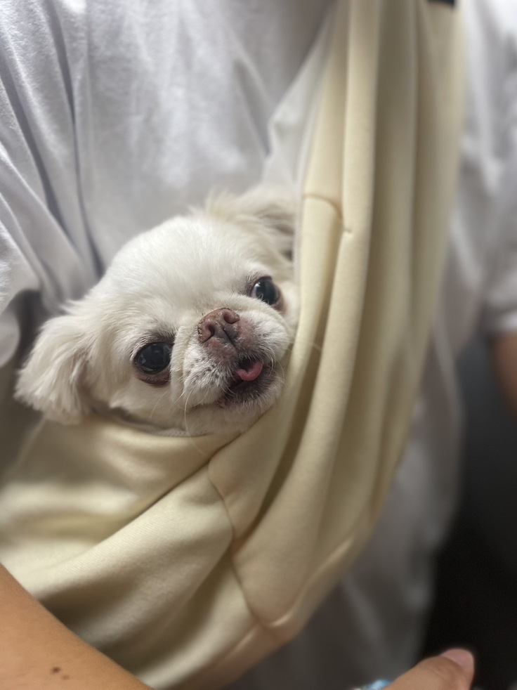 大好きな散歩も歩くと咳が出て苦しそうにするのでなかなか自分の足で歩くことが出来ず、私が抱っこをして一緒に散歩をしています。
