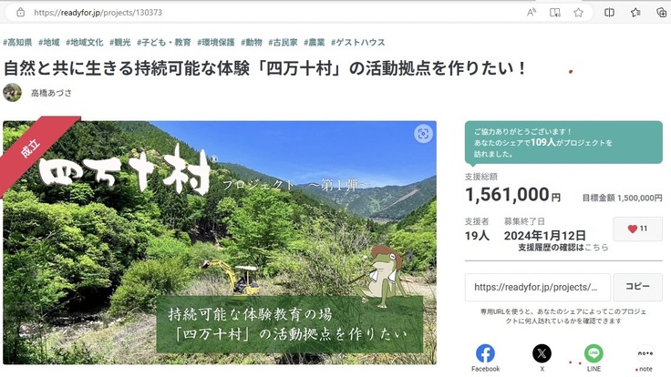 「四万十村」の活動拠点を作りたい!