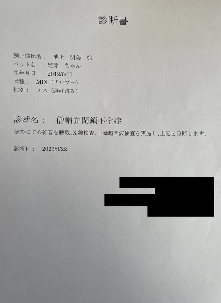 ご支援いただいた資金は、僧帽弁閉鎖不全症の手術費用・入院費用に充てさせていただきます。