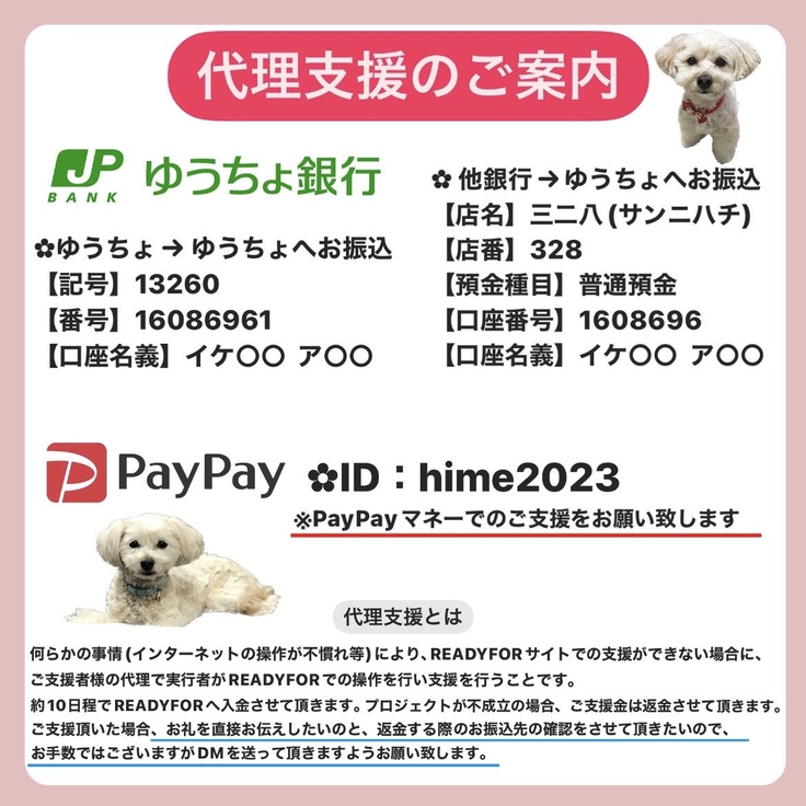 PayPay 又は ゆうちょ銀行 へお振込して頂き