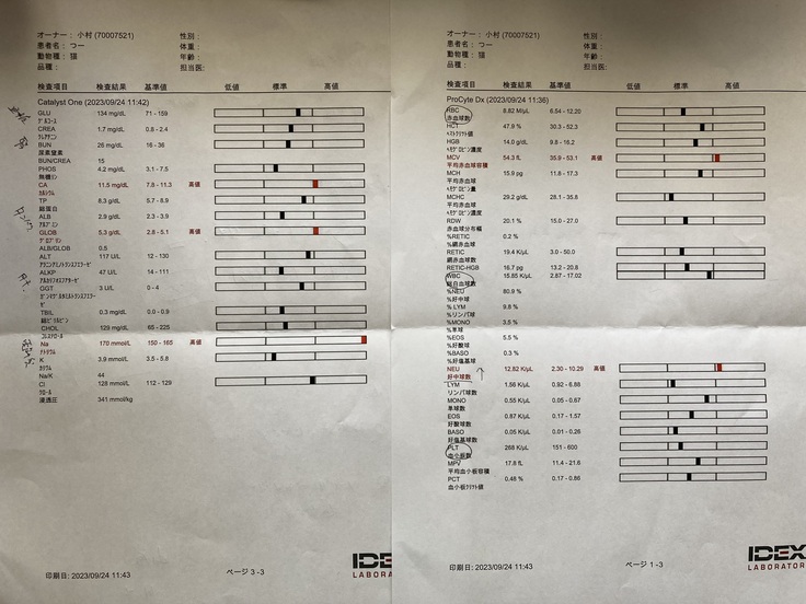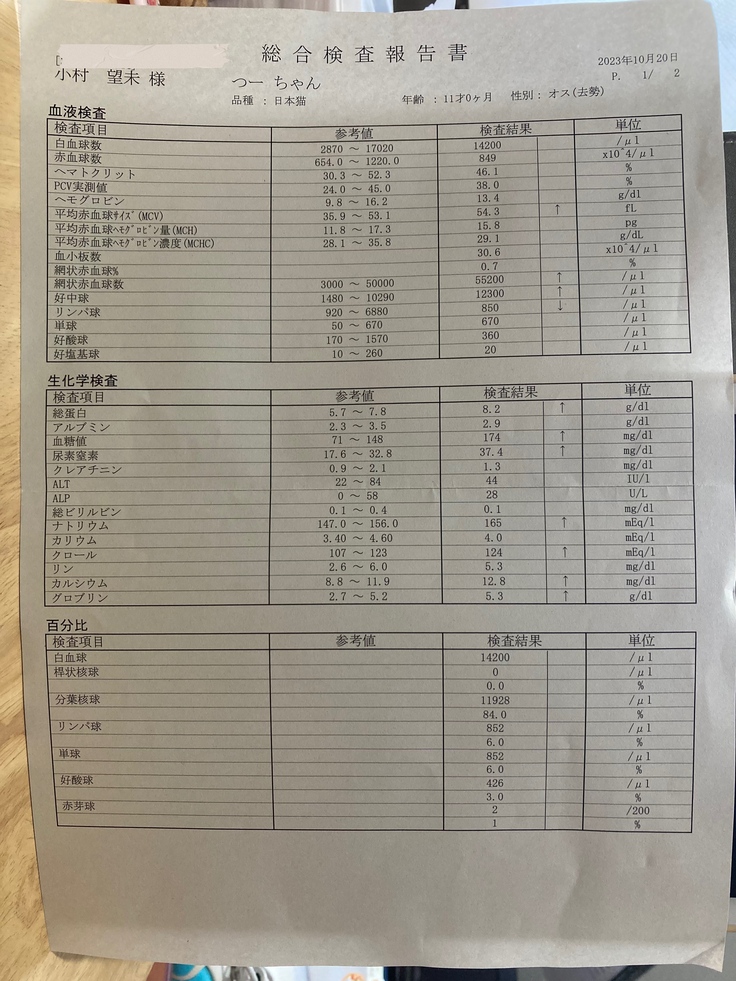 10/8の午後に担当獣医師から連絡があり、
