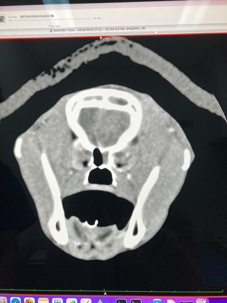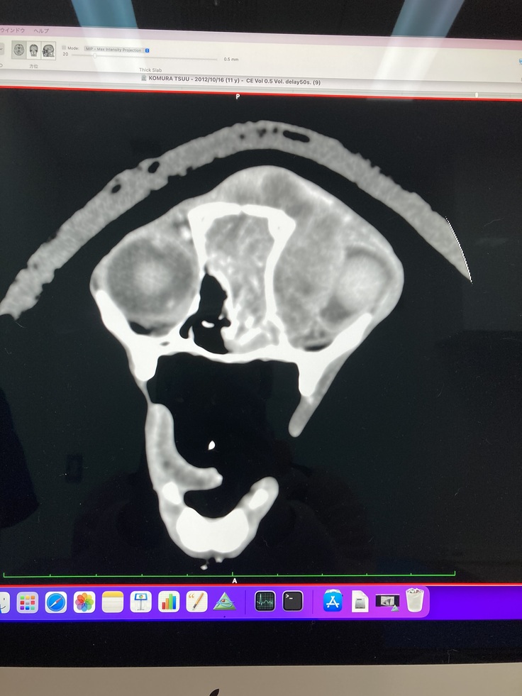 (画像上側がおでこ辺りになります。左目が腫瘍によって押しつぶされている状態です)