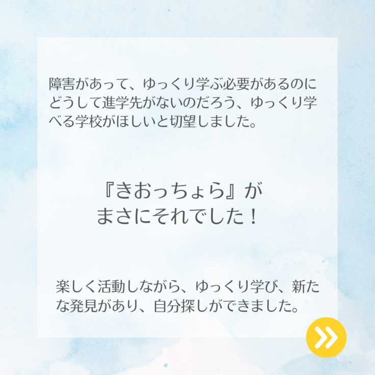 (こちらは、きおっちょら卒業生のお母様から以前いただいたメッセージの一部です。)