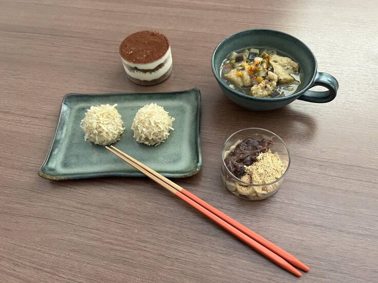 南関町の名産「南関素麺」や、南関町のおやつの定番、橋本製菓さんの「黒棒」を使って、おしゃれなスイーツを開発しました。