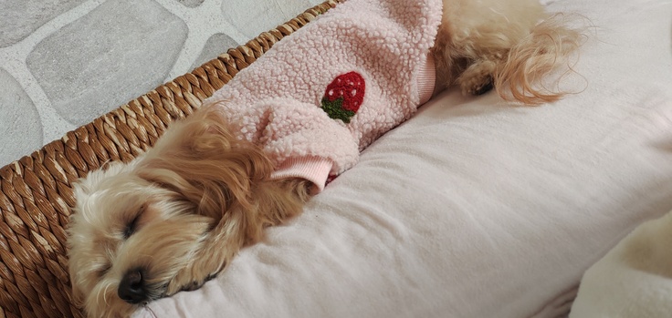 お家の中でも洋服を着させるとポカポカしたのか眠ってしまいました。