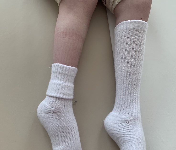 そのお子さんに娘のサンプル靴下を試着してもらったところ当然ながら靴下の跡が残ります。