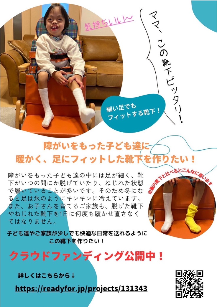 最近、福祉関係者の方にクラウドファンディングの事を伝えた際、「靴下の事なんて考えもしなかった」「靴下って視点は思いつかなかった」と驚かれました☺️
